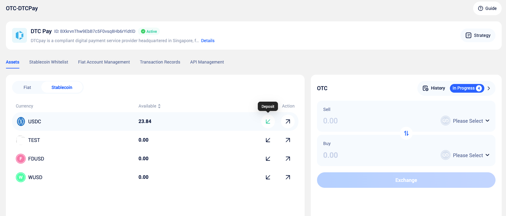 We work with DtcPay through an API integration model. You need to first complete merchant registration on DtcPay and obtain the corresponding API credentials. Once configured, you can access DtcPay’s full OTC capabilities within this system while utilizing our various featured functions for more efficient business operations.
