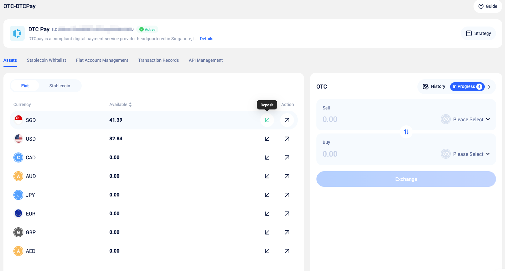 DtcPay operates on a pre-deposit model. Before conducting OTC trades, you must first deposit fiat or stablecoins into the DtcPay designated account for subsequent trade settlement and fund flow.