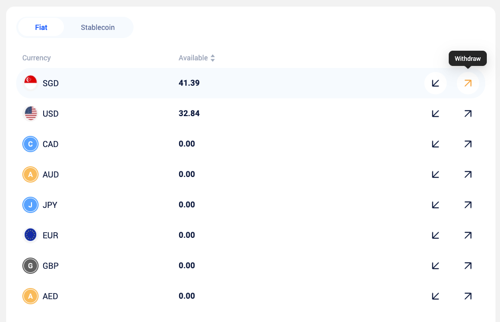 Click “Withdraw” in the currency list.