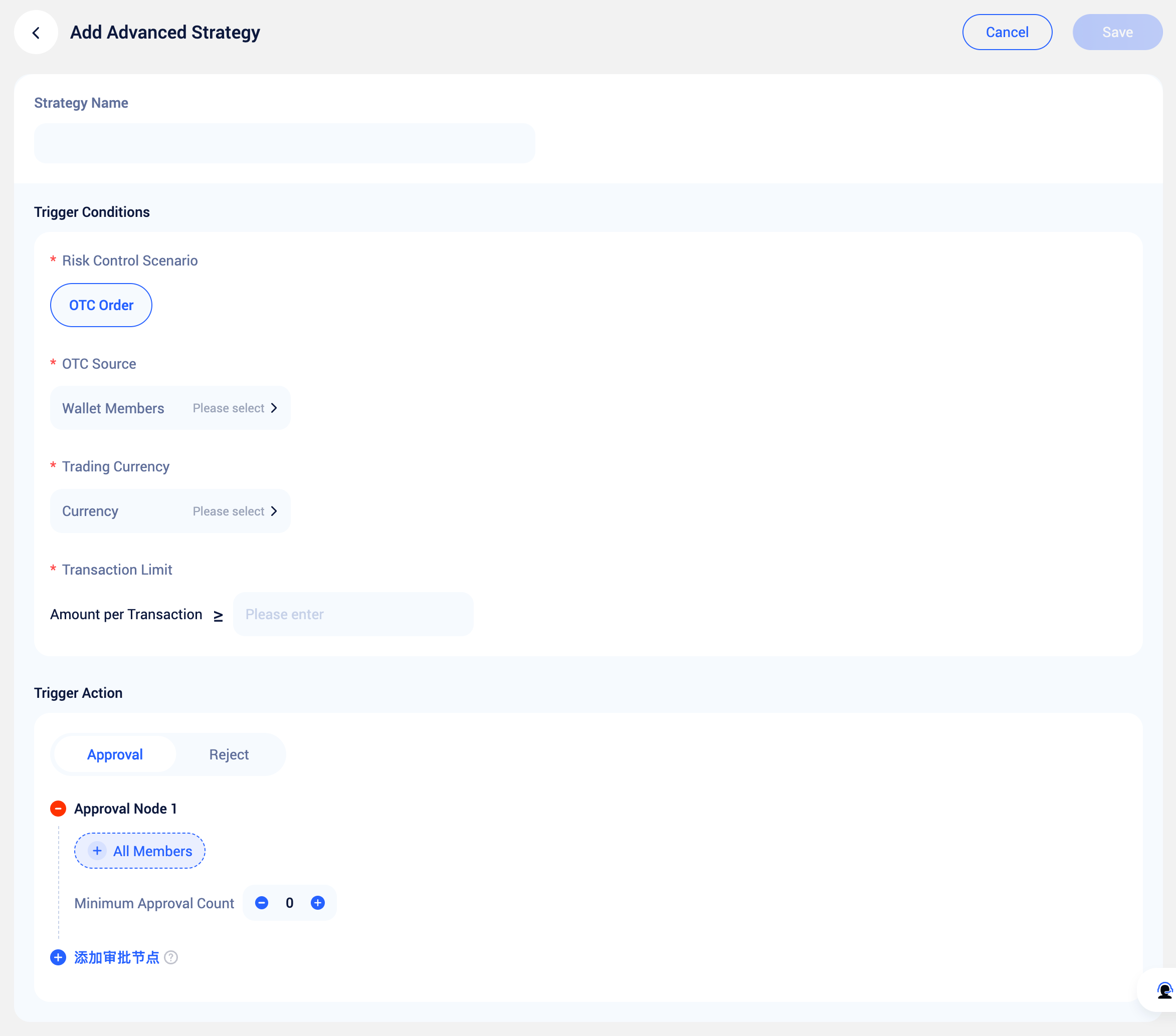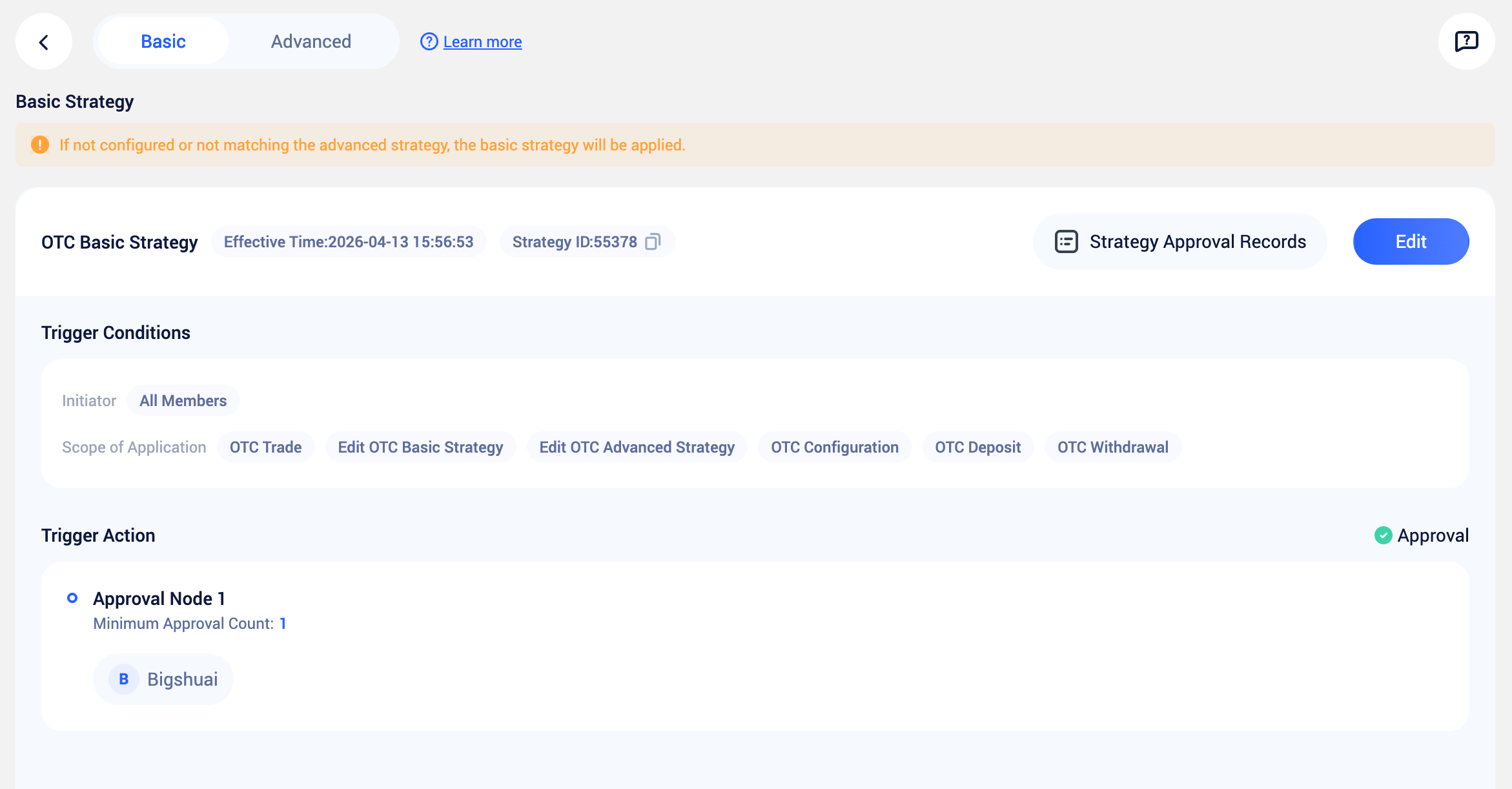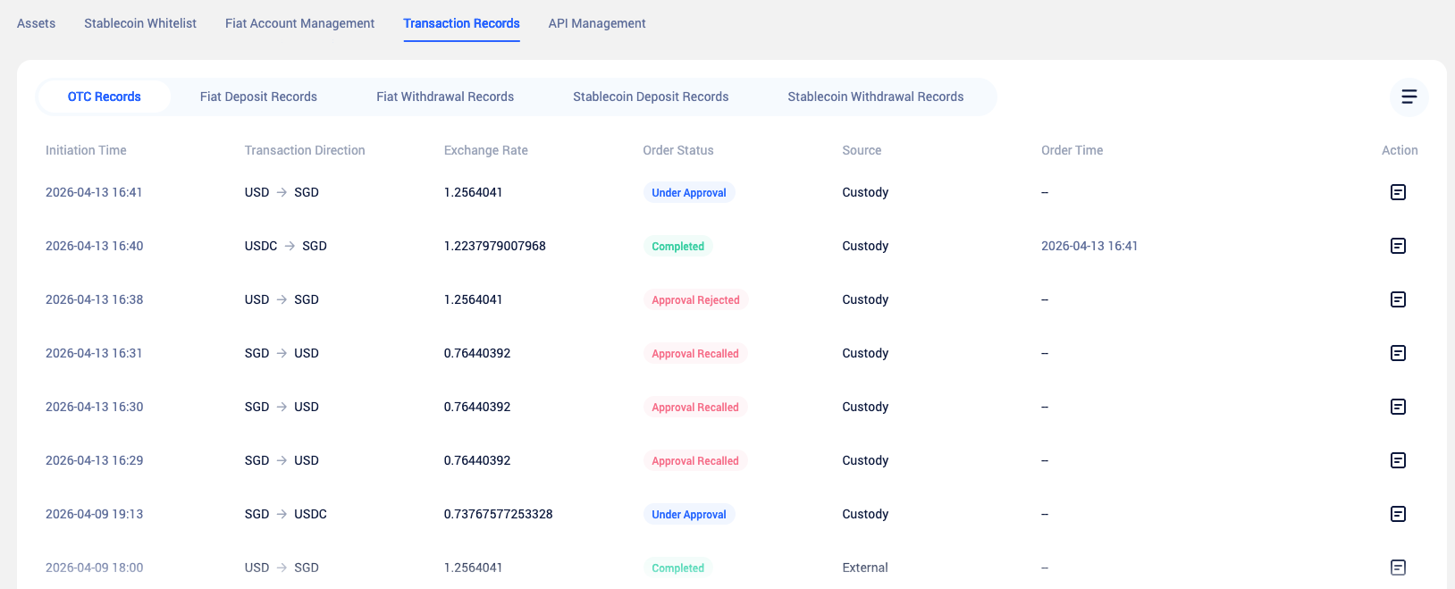 | Trading & Fund Withdrawal | For OTC trades, fiat/stablecoin withdrawals — trigger approval flows based on member, currency, single transaction limit, etc. |