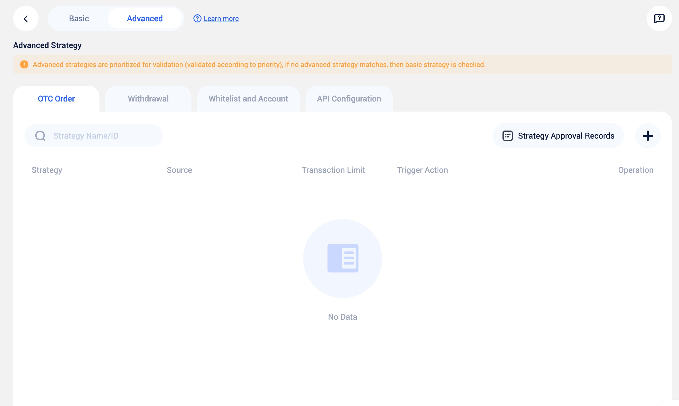 The OTC policy engine is used to build a rigorous and customizable risk control framework, supporting both basic policies and advanced policies.